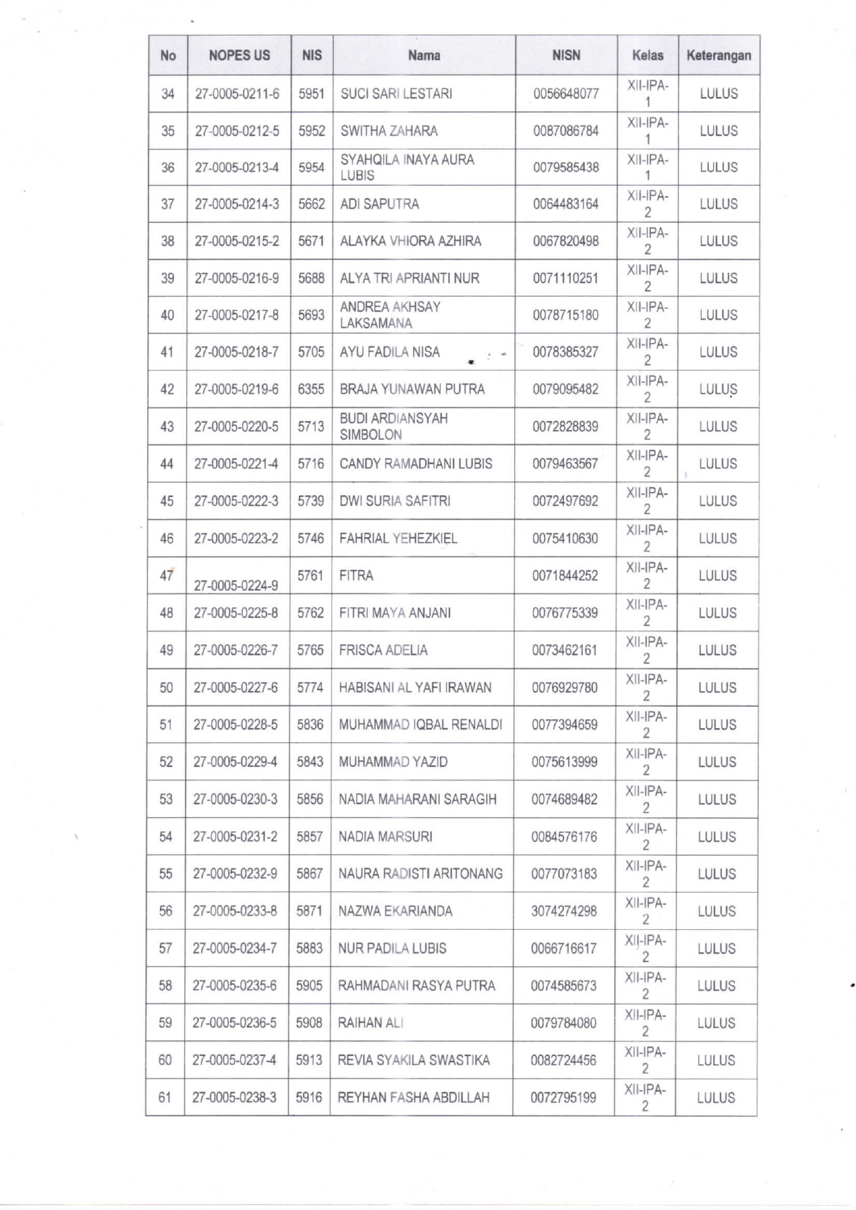 PENGUMUMAN HASIL KELULUSAN SISWA TP. 2024/2025
