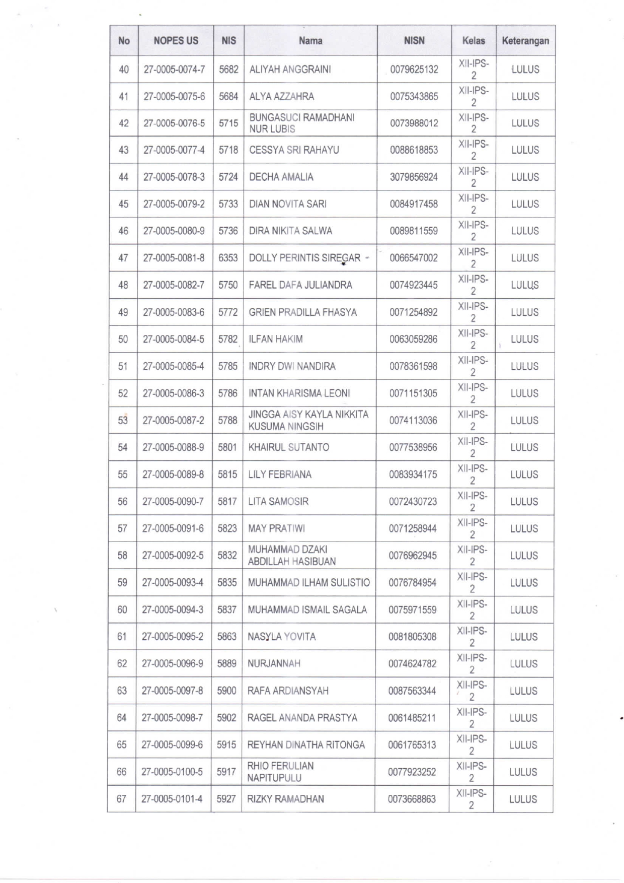 PENGUMUMAN HASIL KELULUSAN SISWA TP. 2024/2025